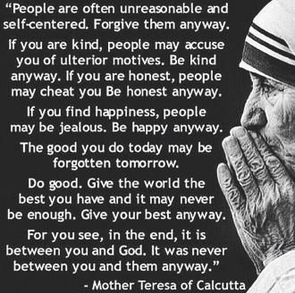 I participated in the first MILES program and as my project did a unit on river restoration with my Gifted and Talented class at Franklin Middle School. As a culminating activity I wrote a grant and received funding from our local Kiwanis club to plant trees along a section of the Portneuf river at Edson Fichter Nature Area. It was a full day activity that really turned out well. For a year the trees thrived as community members helped to water them daily as they walked along the path next to the river. There was a nice placard asking the community to help out as the area receives little water in the summer months. I often heard positive comments from walkers on how much of a connection to the area that simple act of watering the trees added to their nature walk. Sometime later however all five trees along that stretch were broken off and the caging and sign were thrown into the river by vandals. One tree we planted in a different area remains and is doing well. It can be seen in the photo. I have debated for two years about replacing the trees and trusting that it won't happen again. I have decided to make it my fall project again and have faith it will last longer. Mother Teresa's words offer encouragement. This whole experience Is just a reminder that for change to occur we stay the course against differing opinions and values as we work for a better world.